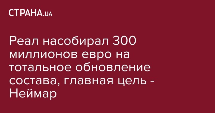 Реал насобирал 300 миллионов евро на тотальное обновление состава, главная цель - Неймар