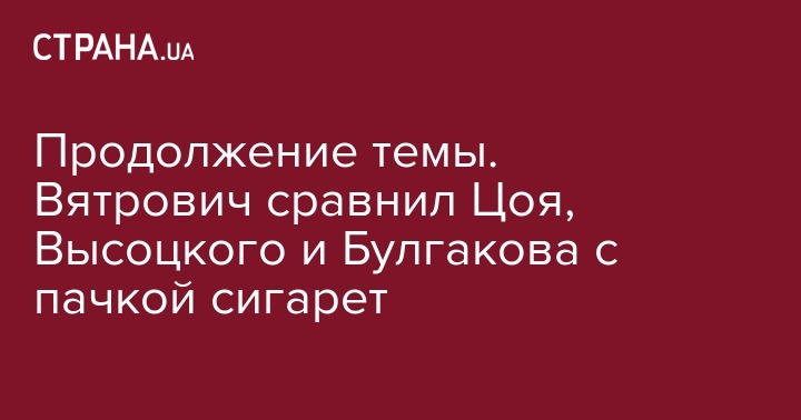 Продолжение темы. Вятрович сравнил Цоя, Высоцкого и Булгакова с пачкой сигарет