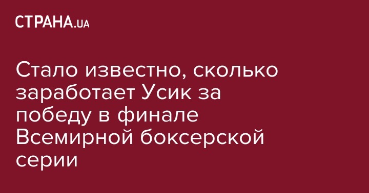 А победитель финала получит еще 2 миллиона долларов - то есть суммарно Усик может получить 4 млн долл.