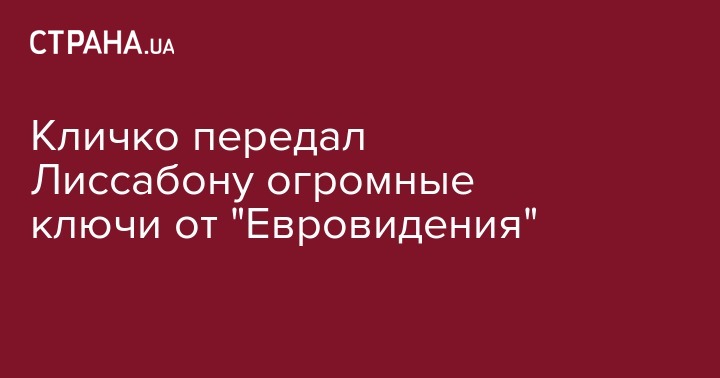 Мэр подчеркнул, что и организаторы, и все участники и гости остались довольны и высоко оценили проведение Евровидения в Киеве. "Поэтому с высоко поднятой головой мы сегодня передаем ключи от конкурса Лиссабону. Благодаря Сальвадору Собралу и его душевной джазовой балладе прошлого года Португалия впервые победила в конкурсе Евровидение. Мы передаем Лиссабону эстафету! И именно с этого момента начинается отсчет времени до старта песенного конкурса, который в этом году пройдет в столице Португалии", - сказал Кличко.