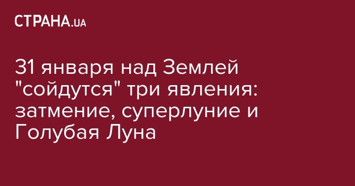 Три астрономических явления - лунное затмение, суперлуние и голубая Луна - "сойдутся" в ночь 31 января. Об этом сообщает портал AccuWeather.
