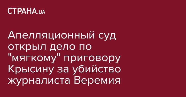 Апелляционный суд Киева принял к рассмотрению жалобы на мягкий приговор для Юрия Крысина, которого осудили на 4 года тюрьмы условно за убийство журналиста Вячеслава Веремия. Об этом говорится на сайте суда.