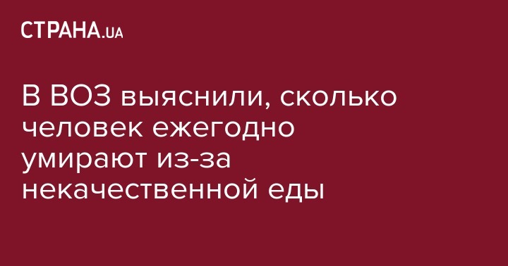 "По оценкам, 600 миллионов человек - почти каждый десятый человек в мире - заболевают после употребления загрязненных пищевых продуктов и 420 тысяч человек ежегодно умирают", - говорится в сообщении.
