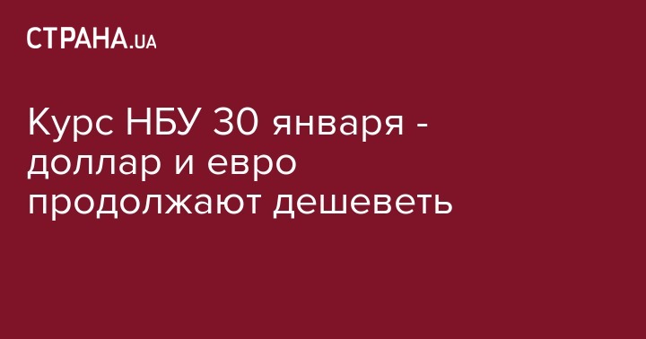 Во вторник, 30 января, Нацбанк установил официальный курс гривны по отношению к иностранным валютам. По сравнению с вчерашним днем, доллар и евро продолжают дешеветь.