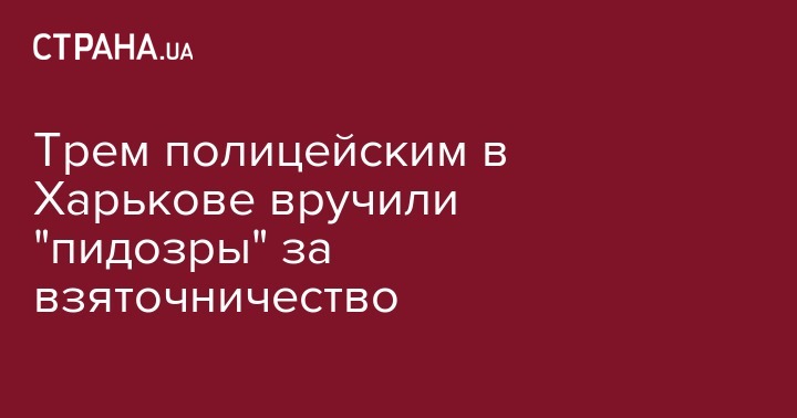 Следователи прокуратуры Харьковской области вместе с представителями внутренней безопасности Нацполиции объявили о подозрении трем полицейским - 32-летнему старшему лейтенанту и двум 25-летним лейтенантам полиции в совершении коррупционных преступлений. Об этом сообщил представитель генпрокуратуры Андрей Лысенко на своей странице в Facebook.