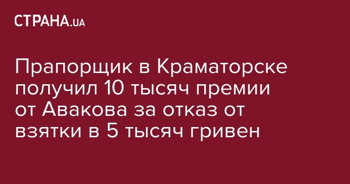 Прапорщик в Краматорске получил 10 тысяч премии от Авакова за отказ от взятки в 5 тысяч гривен