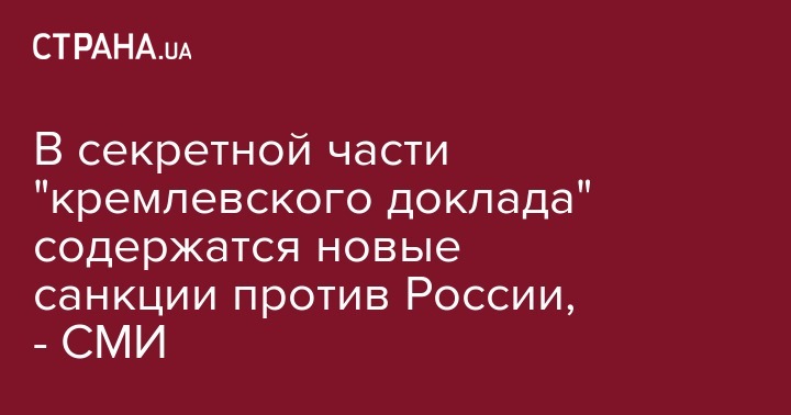 В секретной части "кремлевского доклада" содержатся новые санкции против России, - СМИ