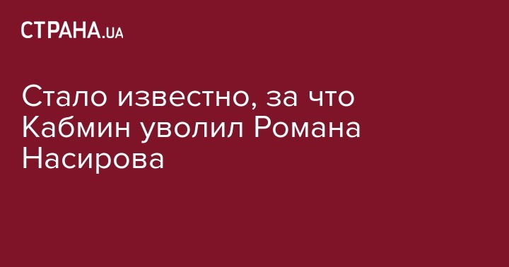 Кабмин уволил с должности главы Государственной фискальной службы Романа Насирова за двойное гражданство. Об этом сообщают "Украинские новости".