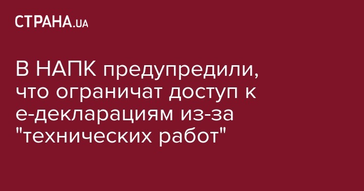 Национальное агентство по предотвращению коррупции (НАПК) предупреждает о временном ограничении доступа к реестру электронных деклараций 1 февраля.