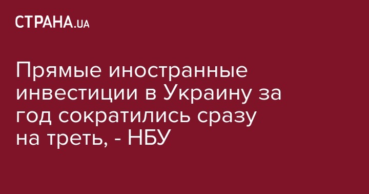 Прямые иностранные инвестиции в Украину за год сократились сразу на треть, - НБУ
