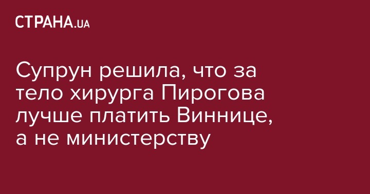 Супрун решила, что за тело хирурга Пирогова лучше платить Виннице, а не министерству