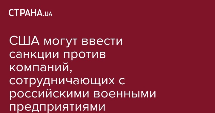 США могут ввести санкции против компаний, сотрудничающих с российскими военными предприятиями