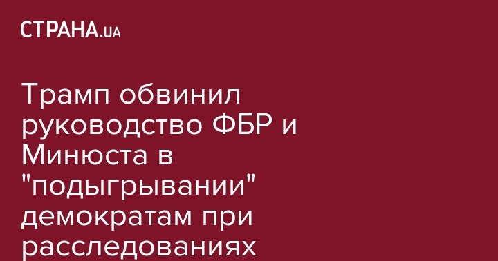 Дональд Трамп обвинил руководство ФБР и Министерства юстиции США в политизации расследований. Об этом президент США написал в Twitter.