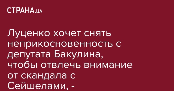 Причиной желания генерального прокурора Украины Юрия Луценко снять неприкосновенность с депутата-оппозиционера Евгения Бакулина является попытка отвлечь внимание украинского общества от собственных провалов генпрокурора, его туризма (имеется в виду видимо скандал с поездкой на Сейшелы - Прим.Ред.) и войны с НАБУ, а также острая необходимость "оживить" катастрофически снижающийся рейтинг власти.
