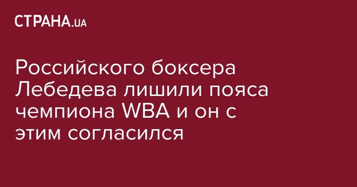 Всемирная боксерская ассоциация (WBA) лишила россиянина Дениса Лебедева титула чемпиона мира в первом тяжелом весе.