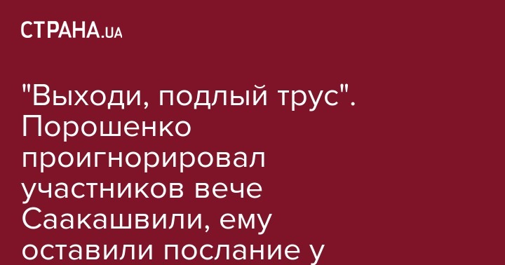 "Выходи, подлый трус". Порошенко проигнорировал участников вече Саакашвили, ему оставили послание у ворот