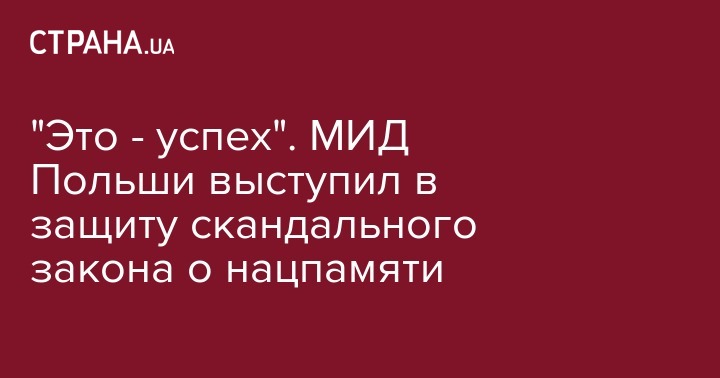 "Я думаю, что Польша только выиграет в этих спорах, в том смысле, что они делают общественность осведомленной в том, что такое правда. Если появляются термины "польские лагеря смерти", а министр иностранных дел Германии заявляет, что никогда согласится с такой формулировкой, это - успех польской дипломатии", - заявил он.