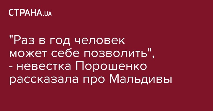 "Раз в год человек может себе позволить", - невестка Порошенко рассказала про Мальдивы
