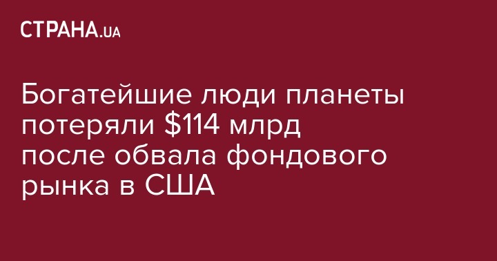 После обвала американского фондового рынка 500 богатейших людей мира потеряли $114 млрд. Об этом сообщается в материалах Bloomberg.