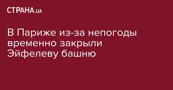 В Париже закрыли Эйфелеву башню из-за плохих погодных условий. Об этом сообщается на странице башни в Facebook.