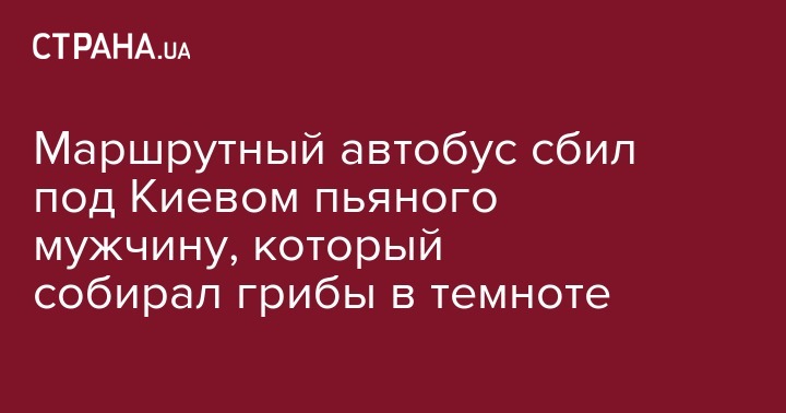 Около 20:30 недалеко на Гостомельской трассе, недалеко от Гостомельского КП в Киевской области произошло ДТП. Маршрутный автобус сбил пьяного пешехода, который заявил, что "собирал грибы" у дороги.