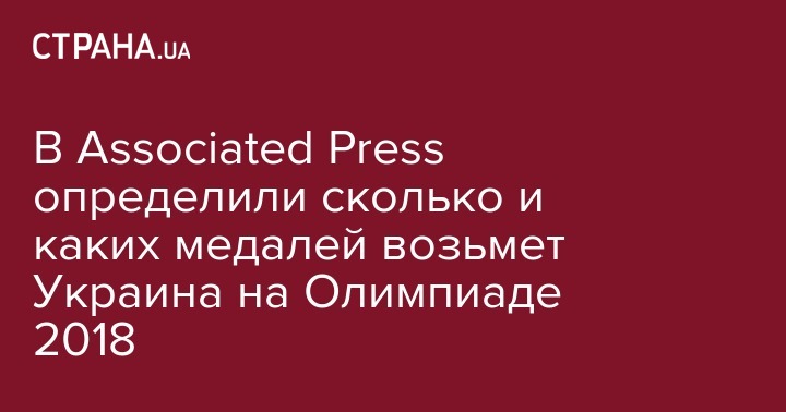 По прогнозу американского агентства The Associated Press (AP) спортсмены сборной Украины завоюют три медали на Олимпиаде-2018.