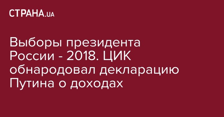 Центральная избирательная комиссия России обнародовала декларацию о доходах президента Владимира Путина, который будет участвовать в выборах в этом году.
