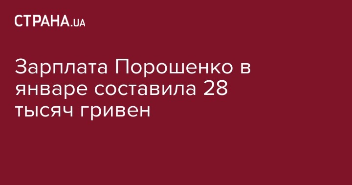 Зарплата президента Украины Петра Порошенко за январь составила всего 28 тыс. гривен или одну тысячу долларов. Об этом ответили в Госуправлении делами на запрос "Украинских новостей".