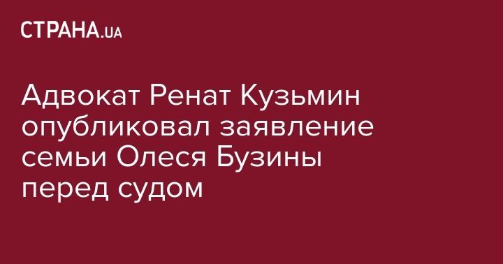 Адвокат Ренат Кузьмин перед намеченным на 9 февраля 2018 года заседанием по делу об убийстве журналиста Олеся Бузины. опубликовал заявление потерпевшей стороны.