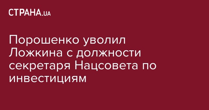 Президент Украины Петр Порошенко уволил Бориса Ложкина с должности секретаря Национального инвестиционного совета.