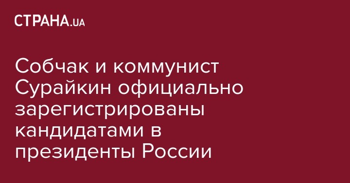 Собчак и коммунист Сурайкин официально зарегистрированы кандидатами в президенты России