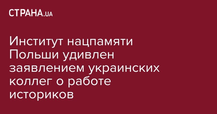 Институт нацпамяти Польши удивлен заявлением Украинского института национальной памяти, в котором говорится, что украинская сторона не видит возможностей для продолжения работы Польско-украинского форума историков в предыдущем формате.