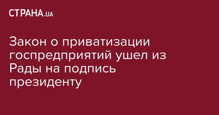 Закон №7066 "О приватизации государственного имущества" был подписан спикером парламента Андреем Парубием и передан президенту. Об этом сообщается в карточке законопроекта на сайте Верховной Рады.