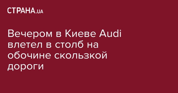 Вечером в Киеве Audi влетел в столб на обочине скользкой дороги