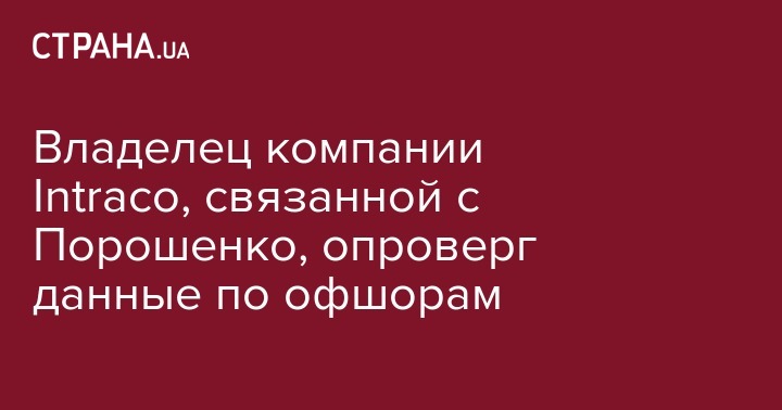 Владелец компании Intraco, связанной с Порошенко, опроверг данные по офшорам