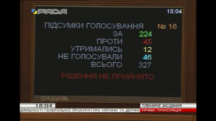 За законопроект "О внесении изменений в некоторые законодательные акты относительно деятельности Генеральной прокуратуры Украины и Государственного бюро расследований" в обновленной редакции депутата из фракции Блок Петра Порошенко Сергея Алексеева проголосовали 224 депутата. Затем Парубий поставил на голосование вопрос о повторном принятии данного законопроекта. Но за это набралось еще меньше голосов - 221.