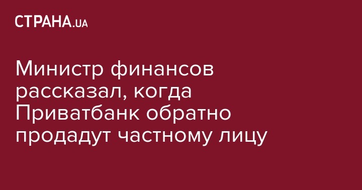 Министр финансов рассказал, когда Приватбанк обратно продадут частному лицу