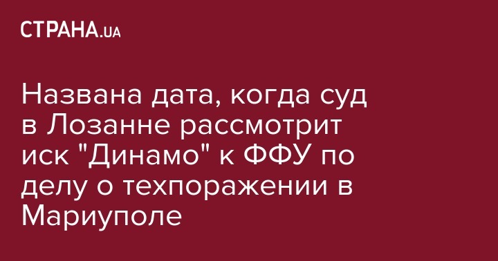 Названа дата, когда суд в Лозанне рассмотрит иск "Динамо" к ФФУ по делу о техпоражении в Мариуполе