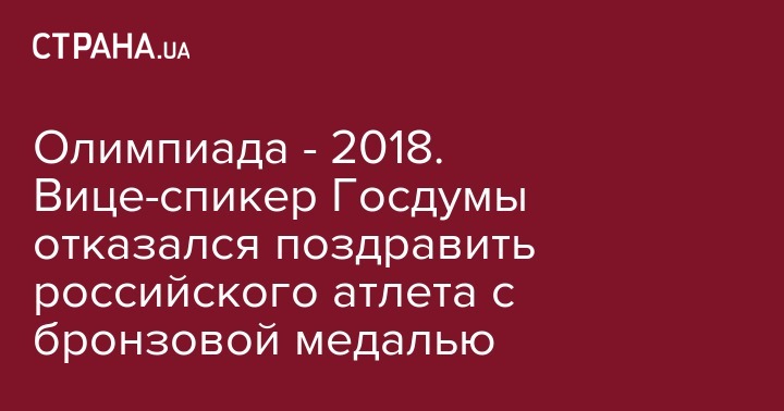 Олимпиада - 2018. Вице-спикер Госдумы отказался поздравить российского атлета с бронзовой медалью