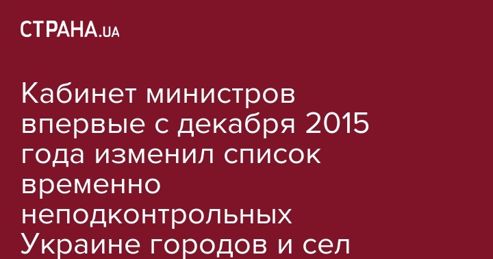 Кабинет министров впервые с декабря 2015 года изменил список временно неподконтрольных Украине городов и сел