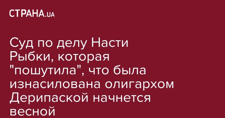 Усть-Лабинский суд Краснодарского края России рассмотрит иск российского олигарха Олега Дерипаски к белорусской модели Анастасии Вашукевич (Насте Рыбке) 1 марта. Напомним, девушка обвинила Олега Дерипаску и зама премьера Медведева в групповом изнасиловании, а потом сказала, что пошутила.