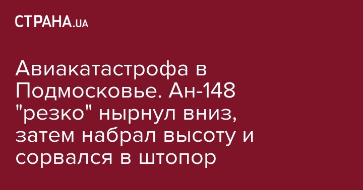 Авиакатастрофа в Подмосковье. Ан-148 "резко" нырнул вниз, затем набрал высоту и сорвался в штопор