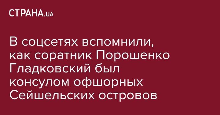 В соцсетях вспомнили, как соратник Порошенко Гладковский был консулом офшорных Сейшельских островов