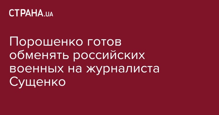 Президент Украины Петр Порошенко заявил о готовности обменять арестованных российских военнослужащих на задержанного в РФ украинского журналиста Романа Сущенко.