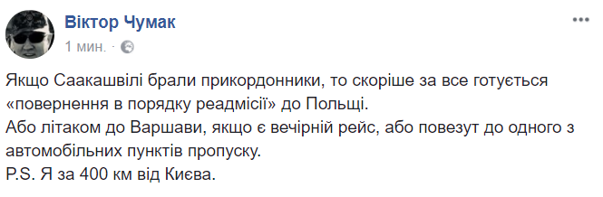16:12  Нардеп Виктор Чумак считает, что Саакашвили будут по договору о реадмиссии возвращать в Польшу.