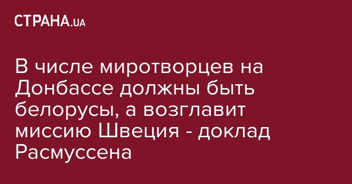 В числе миротворцев на Донбассе должны быть белорусы, а возглавит миссию Швеция - доклад Расмуссена