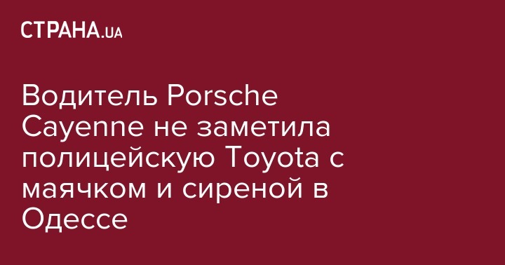 Водитель Porsche Cayenne не заметила полицейскую Toyota с маячком и сиреной в Одессе