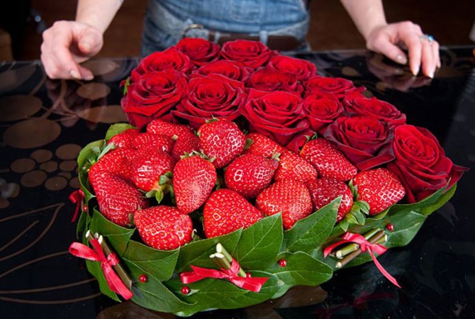 Самые традиционные подарки на День Валентина, помимо открыток-валентинок – это сладости в форме символа праздника. Если ваш возлюбленный – сладкоежка, то можно подарить ему конфеты-сердечки или испечь торт, а если он равнодушен к сладкому, - то несладкий пирог с мясной, сырной или другой начинкой. Главное – чтобы угощение имело форму сердца. Можно устроить целый романтический ужин. А можно преподнести корзинку с фруктами, сыром и бутылкой вина, которую вы и выпьете вдвоем.