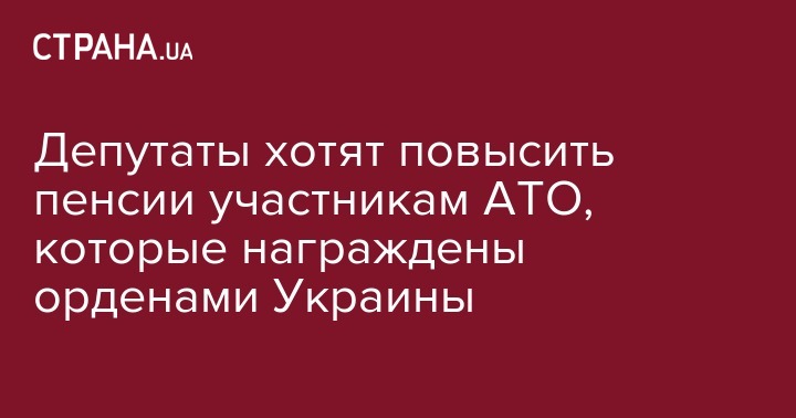 Соответствующие нововведения предложены законопроектом № 8033 "О внесении изменения в статью 1 Закона Украины "О пенсиях за особые заслуги перед Украиной" относительно назначения пенсий участникам АТО, награжденным орденом Украины".
