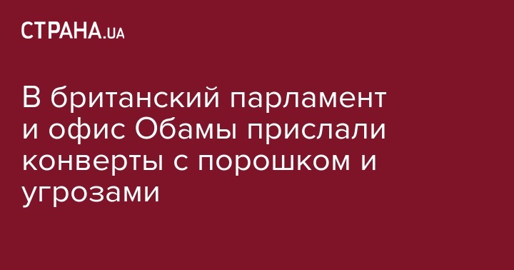 Конверт с неизвестным белым порошком был прислан неизвестными в один из офисов в Вестминстерском дворце, где заседает парламент Великобритании, и офис бывшего президента США Барака Обамы в округе Колумбия.